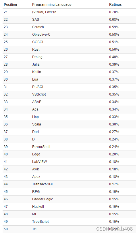 TOP 21-50编程语言名单: