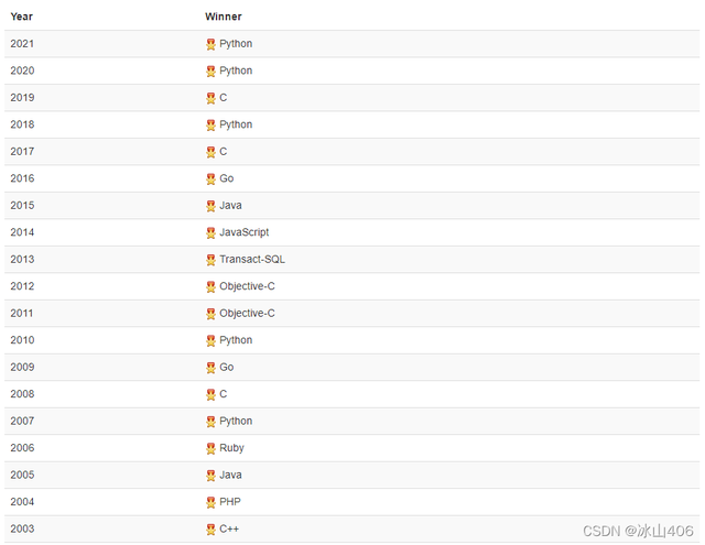 历届"年度最佳编程语言 "奖得主