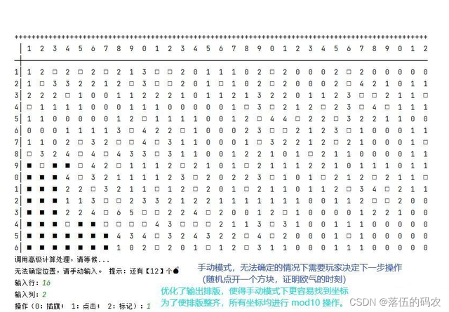 若z 等于 coordinate_list串列的长度,则可以确定coordinate_list串列中记录的’■‘格子都是雷 ,给这些坐标记录上插旗操作(即操作0),回传,