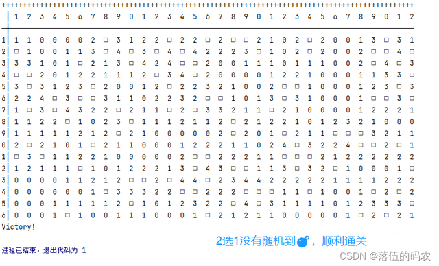 然后遍历一下每个雷的周围八个格子,如果不是字符’*‘,则+1,生成完成,(可以验证,数字与周围雷的数量都是匹配的)